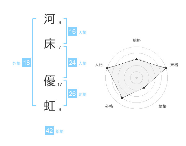 河床 優虹さんの総格は42画の3点!