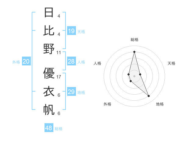 日比野 優衣帆さんを姓名の画数から五運を鑑定