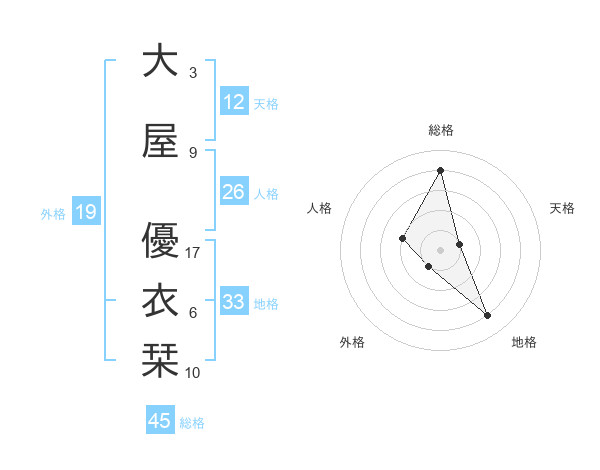 大屋 優衣栞さんを姓名の画数から五運を鑑定