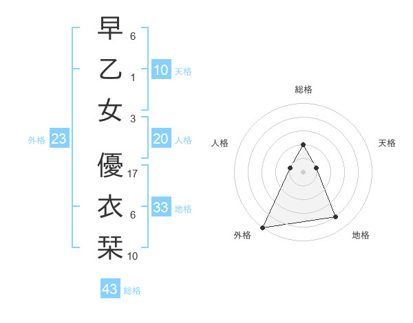 早乙女 優衣栞さんを姓名の画数から五運を鑑定