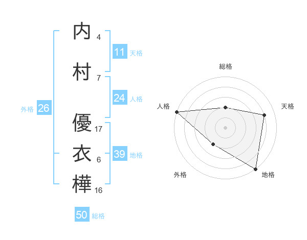 内村 優衣樺さんの総格は50画の2点