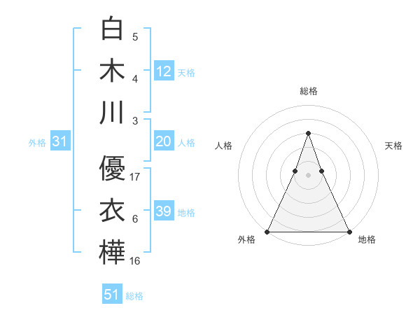 白木川 優衣樺さんを姓名の画数から五運を鑑定