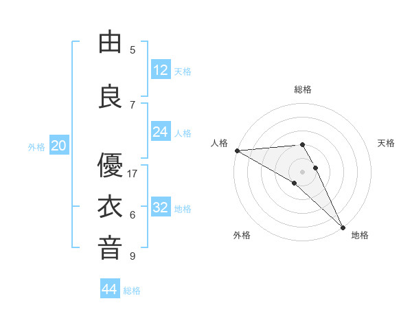 由良 優衣音さんの総格は44画の2点