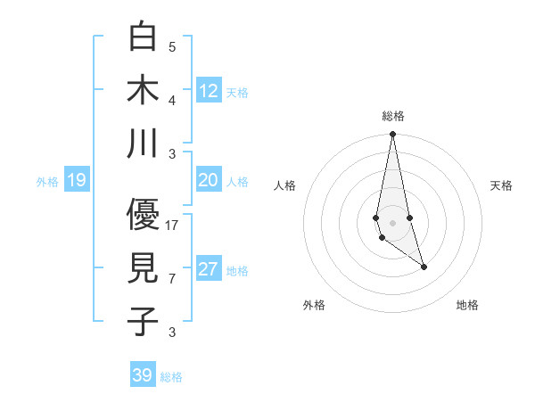 白木川 優見子さんの総格は39画の5点!