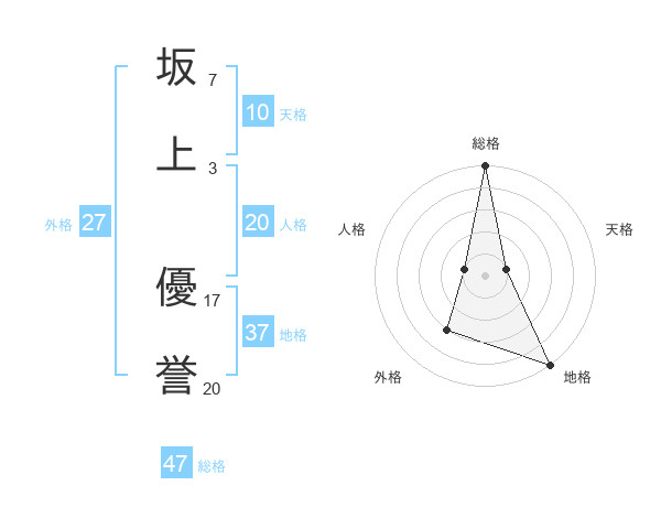 坂上 優誉さんを姓名の画数から五運を鑑定