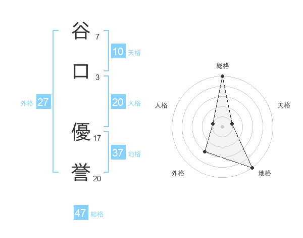 谷口 優誉さんを姓名の画数から五運を鑑定