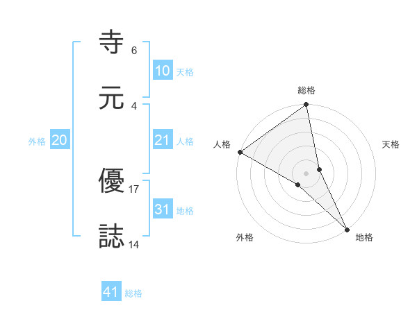 寺元 優誌さんの総格は41画の5点!
