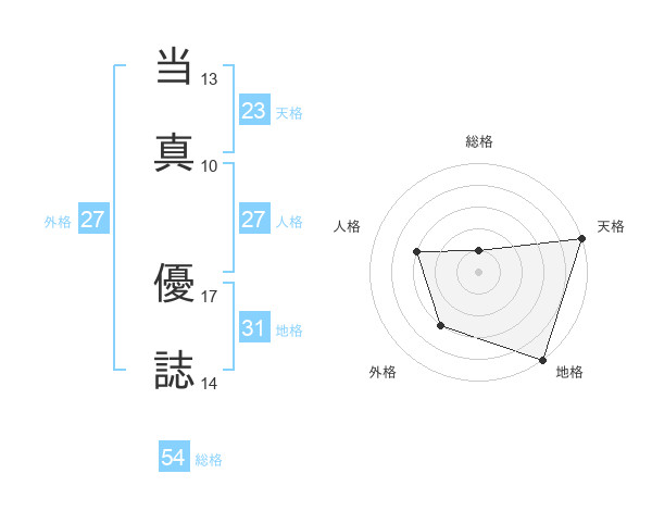当真 優誌さんの天格は23画の5点!