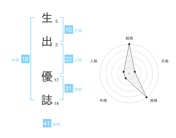 生出 優誌さんの地格は31画の5点!