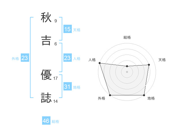秋吉 優誌さんを姓名の画数から五運を鑑定