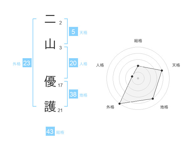 二山 優護さんの地格は38画の4点!