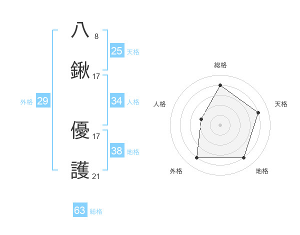 八鍬 優護さんの総格は63画の4点!