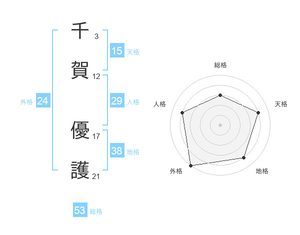 千賀 優護さんの総格は53画の3点!