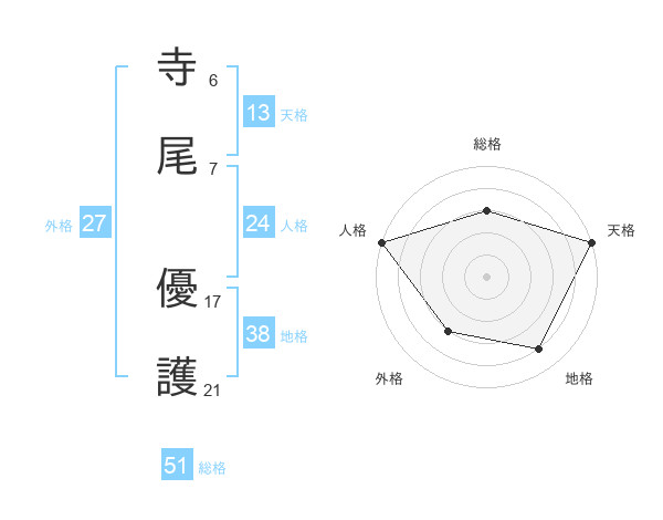寺尾 優護さんを姓名の画数から五運を鑑定