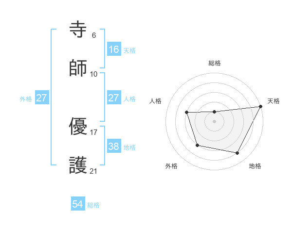 寺師 優護さんの総格は54画の1点!