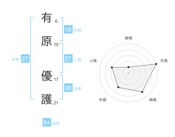有原 優護さんの天格は16画の5点!