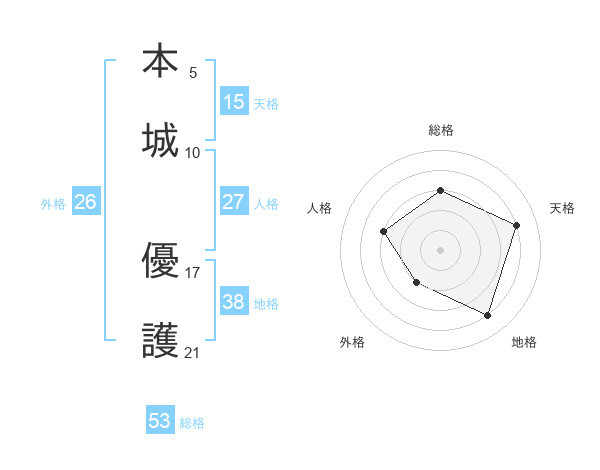 本城 優護さんの総格は53画の3点!