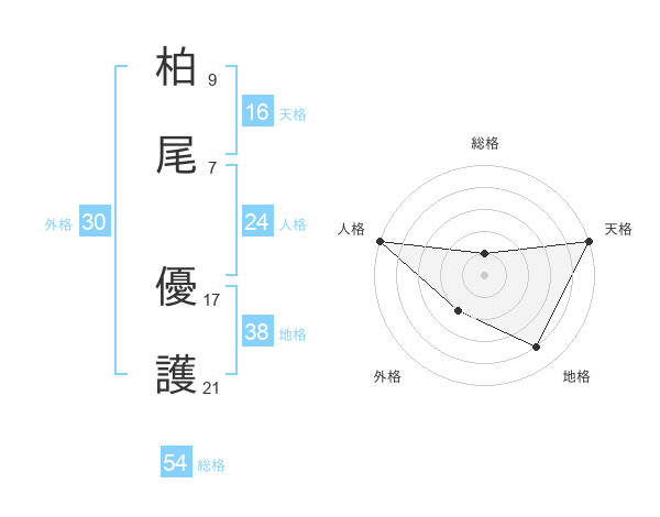 柏尾 優護さんの天格は16画の5点!