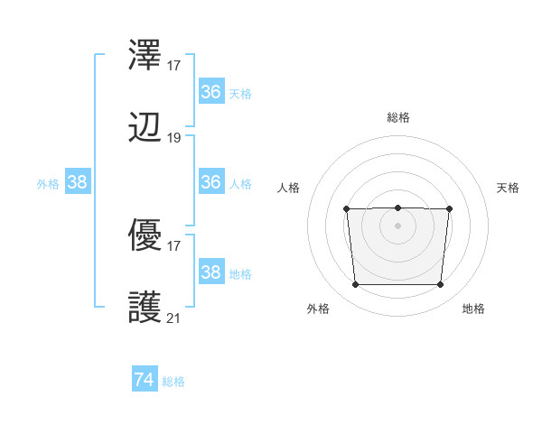 澤辺 優護さんの地格は38画の4点!