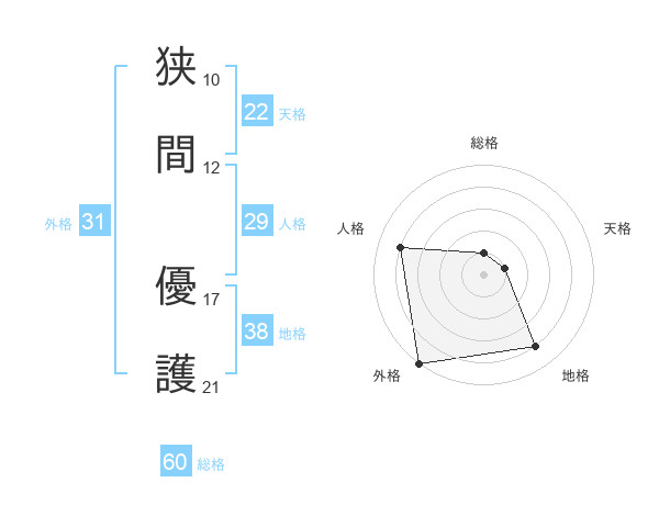 狭間 優護さんの総格は60画の1点!
