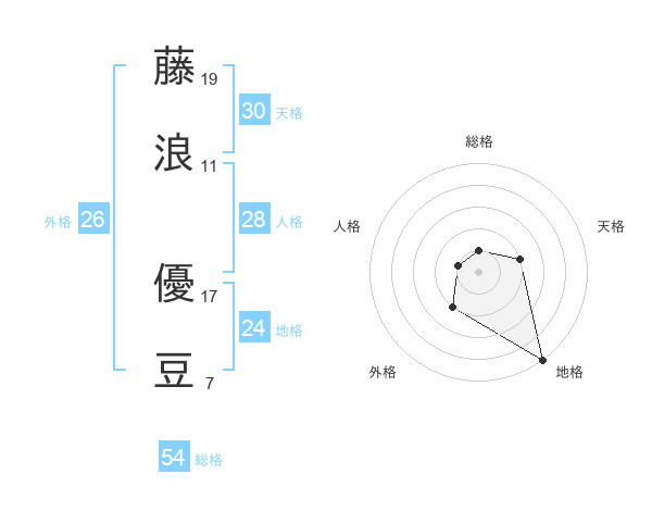 藤浪 優豆さんの天格は30画の2点!