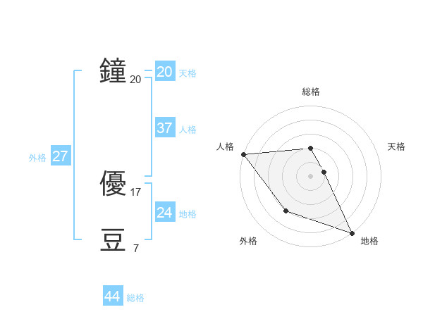 鐘 優豆さんの人格は37画の5点!