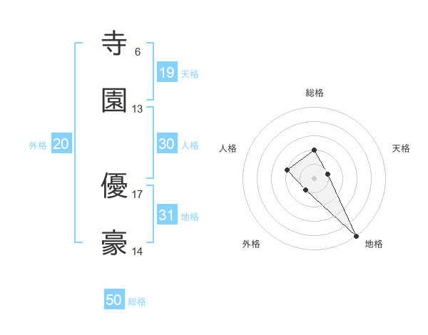 寺園 優豪さんを姓名の画数から五運を鑑定
