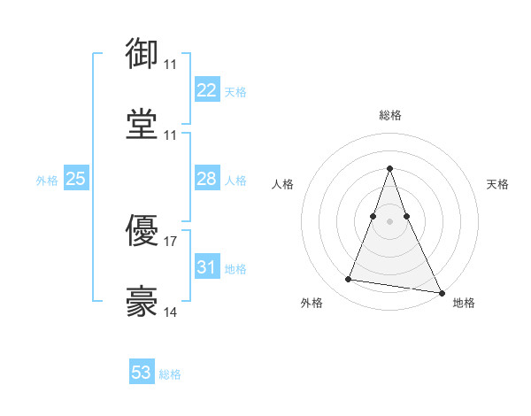 御堂 優豪さんの総格は53画の3点!