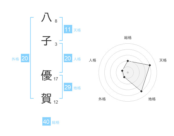 八子 優賀さんの天格は11画の4点!