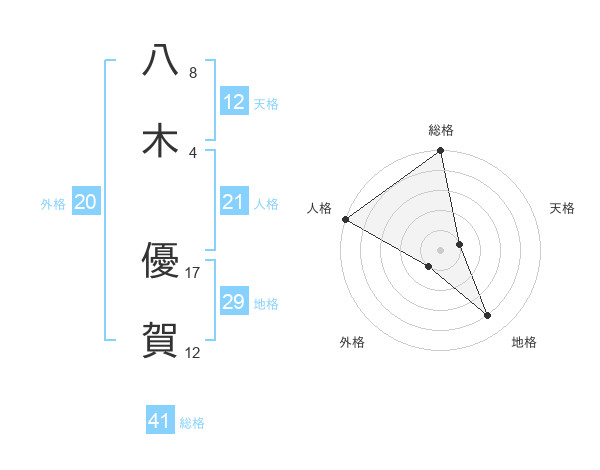 八木 優賀さんの人格は21画の5点!