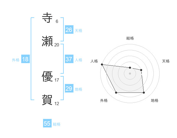 寺瀬 優賀さんの総格は55画の1点!
