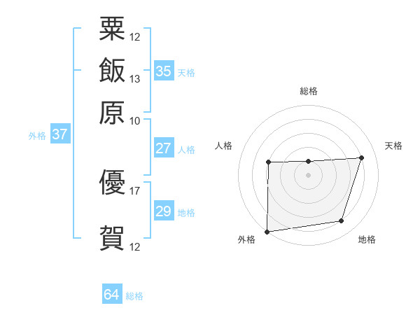 粟飯原 優賀さんの外格は37画の5点!