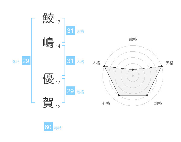 鮫嶋 優賀さんの総格は60画の1点!