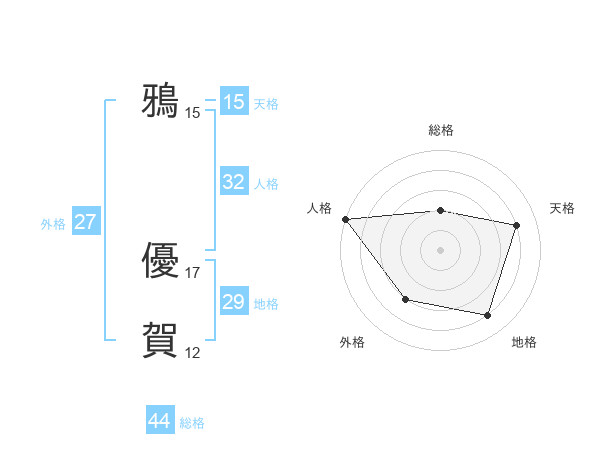 鴉 優賀さんの総格は44画の2点!