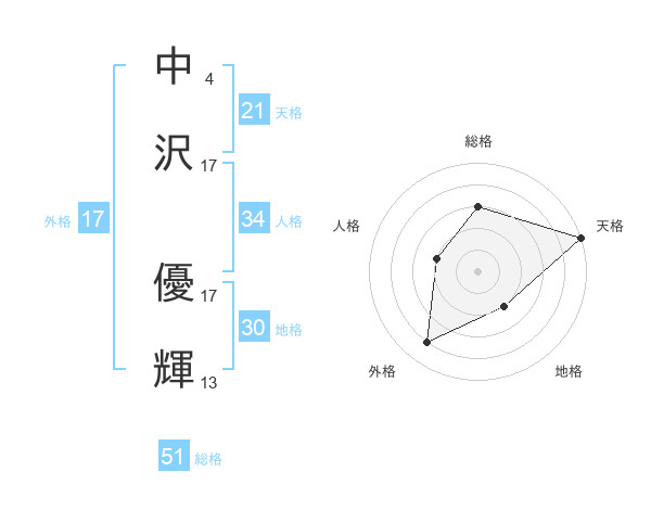 中沢 優輝さんの総格は51画の3点!