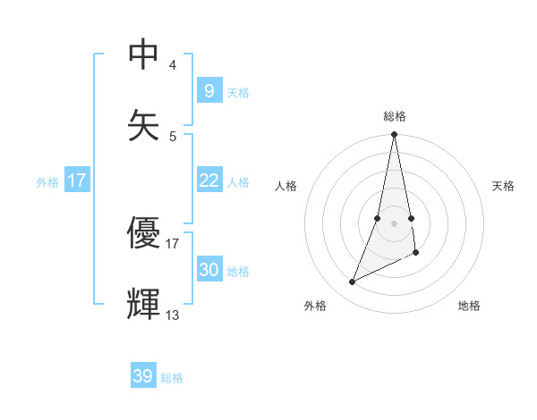 中矢 優輝さんの総格は39画の5点!
