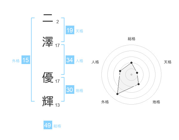 二澤 優輝さんの天格は19画の1点!