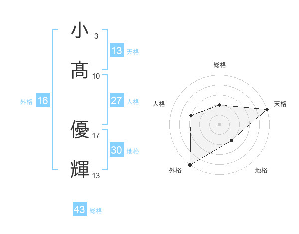 小髙 優輝さんの天格は13画の5点!