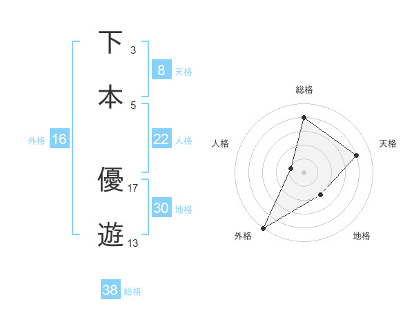 下本 優遊さんの総格は38画の4点!