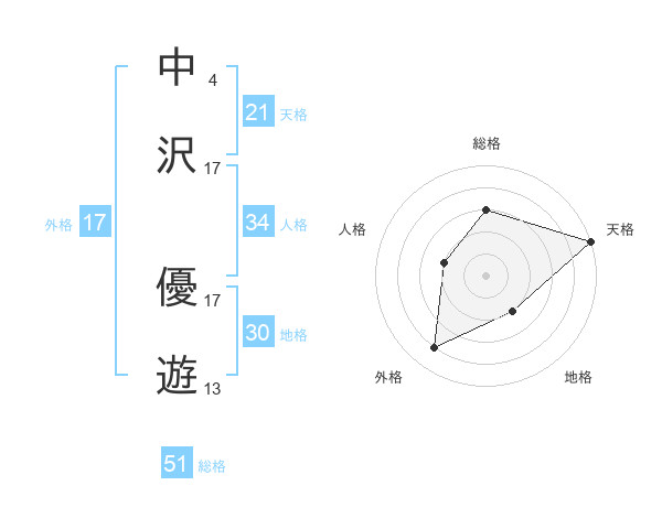 中沢 優遊さんの外格は17画の4点!