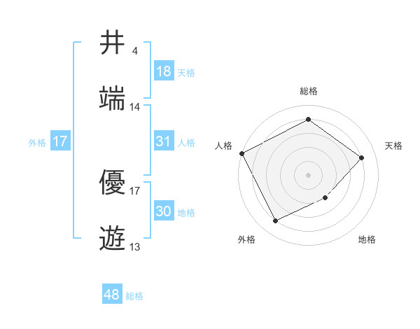 井端 優遊さんの外格は17画の4点!