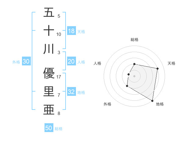 五十川 優里亜さんを姓名の画数から五運を鑑定