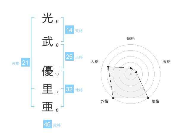光武 優里亜さんの人格は25画の4点!