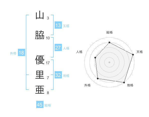 山脇 優里亜さんを姓名の画数から五運を鑑定