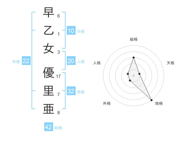 早乙女 優里亜さんの総格は42画の3点!