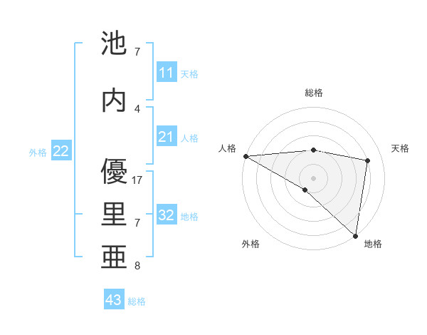 池内 優里亜さんの総格は43画の2点!