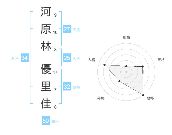 河原林 優里佳さんの地格は32画の5点!