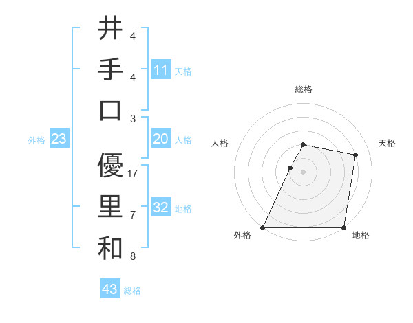 井手口 優里和さんの天格は11画の4点!