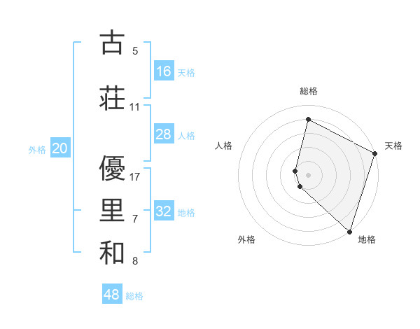 古荘 優里和さんを姓名の画数から五運を鑑定