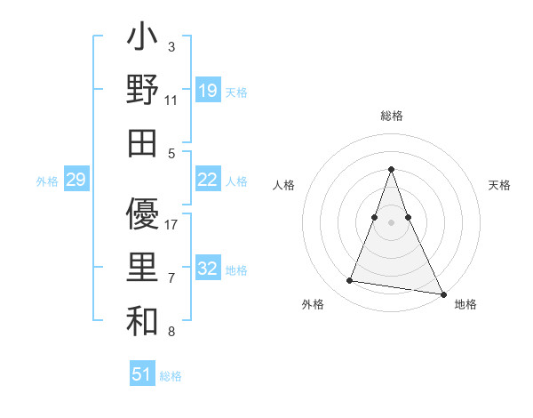 小野田 優里和さんを姓名の画数から五運を鑑定